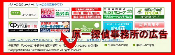 原一探偵事務所は、出稿基準の大変厳しい行政HP(県HP他)にもバナー出稿をしています。